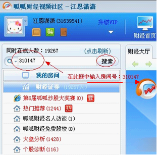 第四步:在大廳的左上角輸入贏家江恩房間號(hào):310147,然后點(diǎn)擊搜索。在搜索結(jié)果右邊點(diǎn)擊贏家江恩進(jìn)入即可。