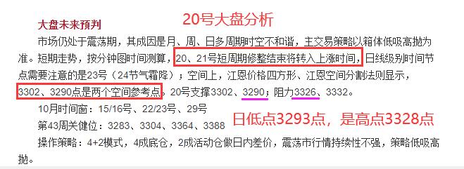 在江恩著作中,對空間速率、波動折返測算中使用算法之一是江恩八分法。以滬指為例,贏家江恩團(tuán)隊9月份以江恩八分法測算,空間上精準(zhǔn)測算出9月11日低點3220點、9月30日低點3202點(百分比測算3204);其中9月高點3350,以及今日支撐3290(低點3293),壓力3326(高點3328)的計算是運用江恩價格四方形,相對比3千多點的指數(shù),誤差最大是3個點,比率是0.001%,已極度靠近何時何價。9月第一波3220---3350,目前是處于9月第二波3204百分比折返的空間結(jié)構(gòu)內(nèi),目標(biāo)參考位已在10月10號贏家江恩培訓(xùn)課中進(jìn)行解讀,并且市場已靠近所提點位,相信贏家學(xué)員早已按既定策略做好了應(yīng)對。