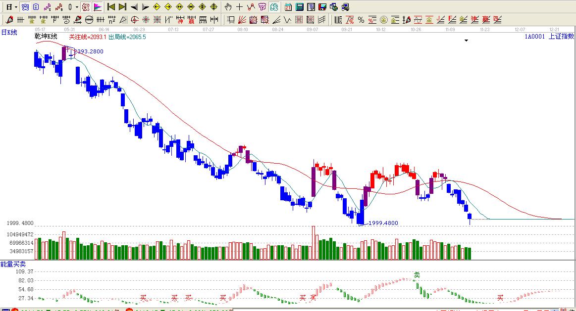 ☆依據(jù)贏家江恩系統(tǒng)乾坤k線提示:大盤處于藍(lán)色區(qū)域,多看少做。
