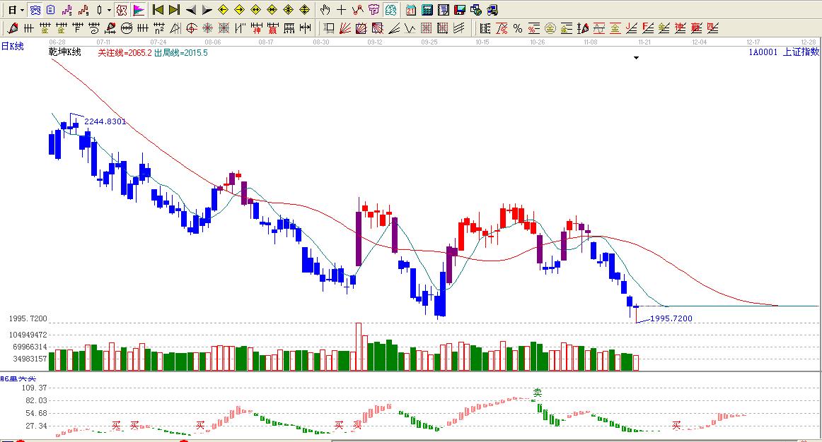 ☆依據(jù)贏家江恩系統(tǒng)乾坤k線提示:大盤處于藍(lán)色區(qū)域,多看少做。