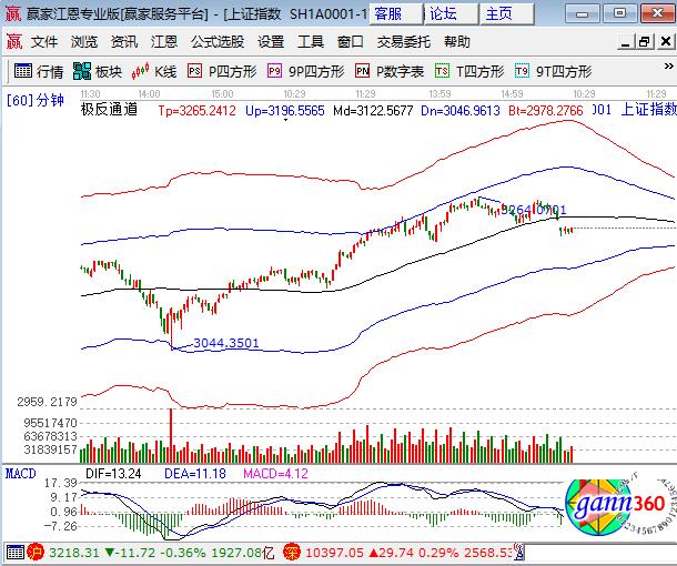 上周五大盤跳空低開收長下影線小跌0.36%,盤中跌幅不深主要是低力力度大,深成指和中小創(chuàng)全線上漲,中小板漲幅最大上漲0.84%。板塊方面,權(quán)重集體下跌,有色、鋼鐵、煤炭、石油等藍(lán)籌領(lǐng)跌,保險微跌;題材方面,鋰電池、高送轉(zhuǎn)、軍工領(lǐng)漲,充電樁、石墨烯、OLED盤中也有表現(xiàn),鈷、黃金、一帶一路概念領(lǐng)跌,個股漲跌互現(xiàn)成交量萎縮。技術(shù)方面,持續(xù)關(guān)注早盤分析的投資者在極反通道外軌線位置想必已減倉,接下來就是等待滬指在震蕩回落至生命線過程中尋找時機(jī),將高位減掉的籌碼回補(bǔ),短周期120跌至生命線,本周預(yù)計以震蕩攀跌為主,江恩百分比90度是3211點,生命線是3170點,投資者所持個股通過贏家江恩軟件分析后做應(yīng)對的策略,3211、3200為日內(nèi)支撐,3235、3242為日內(nèi)阻力,僅供參考,不構(gòu)成任何投資建議。