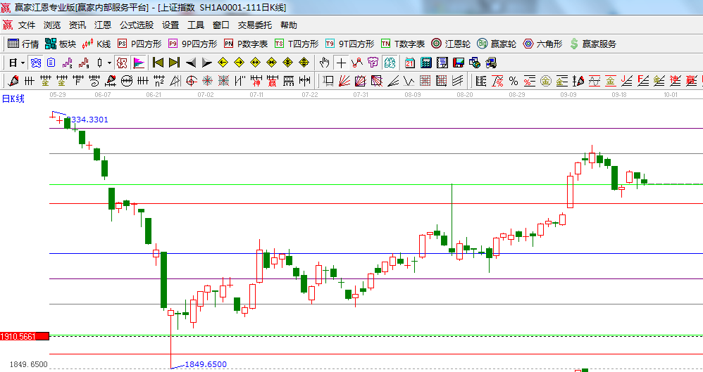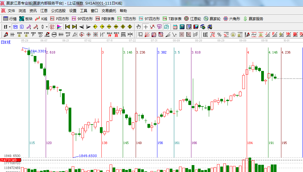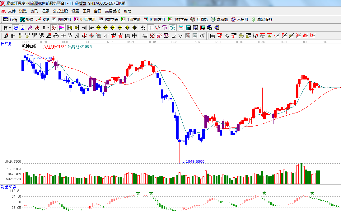 ★依據(jù)贏家江恩系統(tǒng)乾坤K線提示: 短期出局線壓制,關(guān)注線上移,兩線粘合是市場有望轉(zhuǎn)入震蕩;